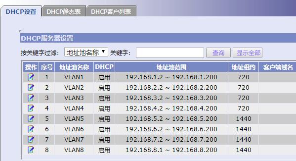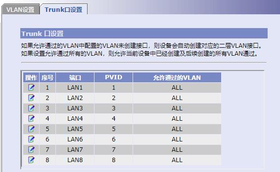 单位里ER3108G是出口路由器,各LAN口下连接S1048交换机,每个LAN口做为一个VLAN,现在的问题是设置trunk为ALL了,但VLAN间还是不能互通。设置如下,这里哪里的问题呢?