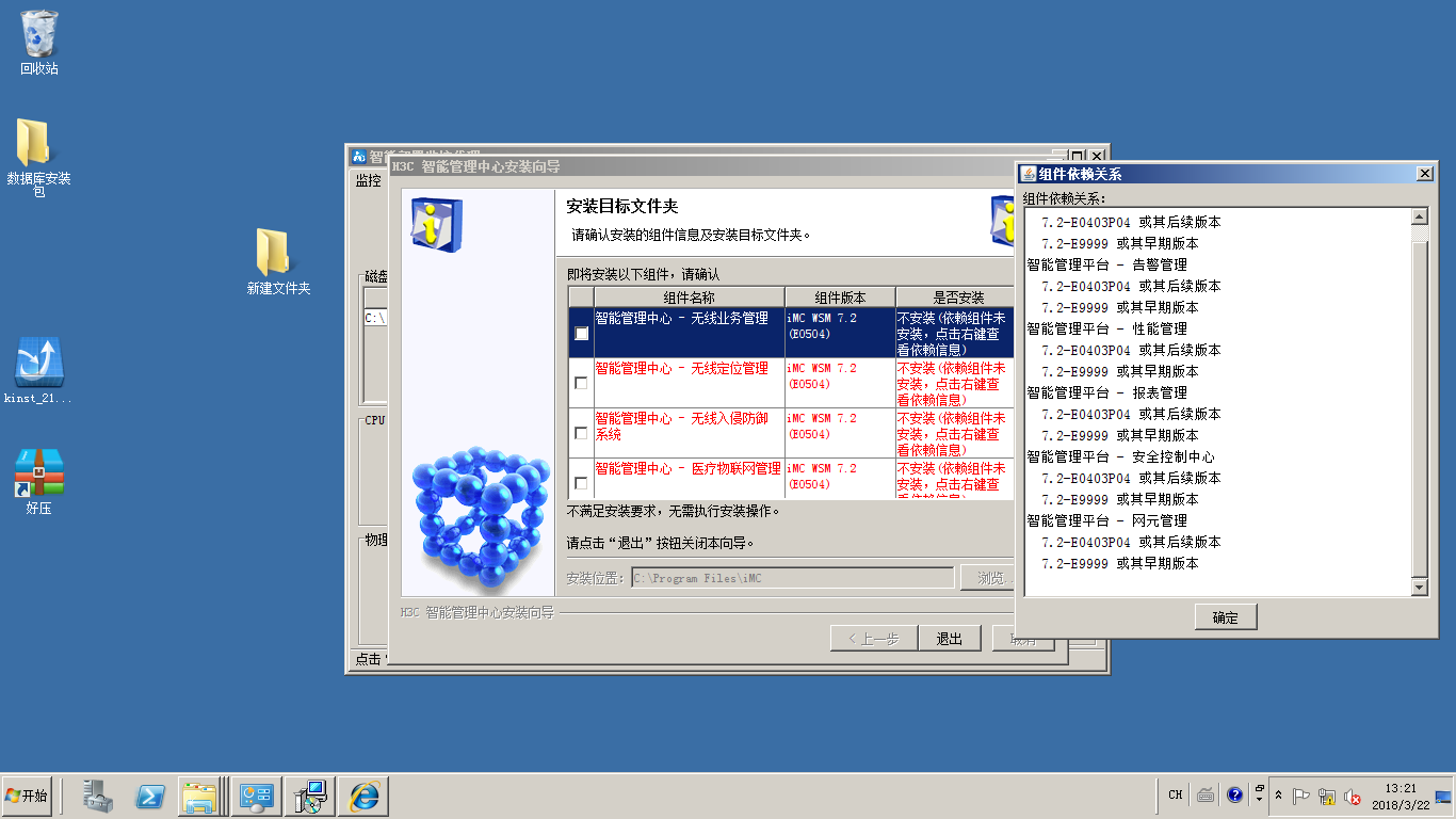 安装IMC无线管理组件WSM时提示未安装依赖组件