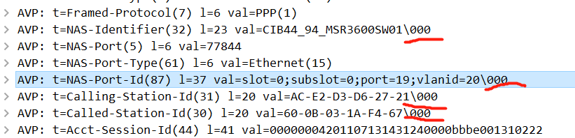 3600上做MAC认证,认证不成功,与认证正常的交换机上抓包对比,发现MAC信息后面多了\000,这个是什么意思 有人知道吗?