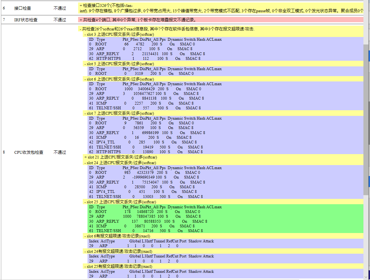 检查diag文件中的CPU收发包检查项,发现在某些槽位下,ROOT,ARP,ARP-Reply,Telnet/ssh,ICMP等会出现比较多。