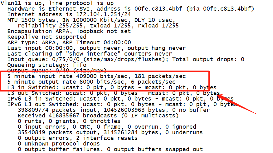 截图只能说明此设备三层网关vlan11在5分钟内几乎没有会包