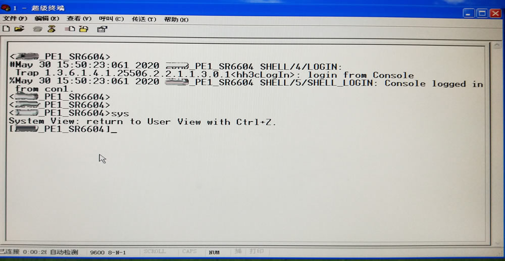 请问一下,华三SR6604路由器,使用超级终端连接进来后,进入用户视图、系统视图不用需入密码吗?如图: