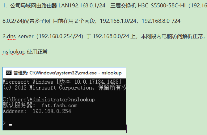 解决方法:问了一个师傅,认为是 域控及DNS 的网关出了问题,把域控及DNS的网关应该设置成三层交换机的IP 192.168.0.2 完美打通DNS及加入域控。