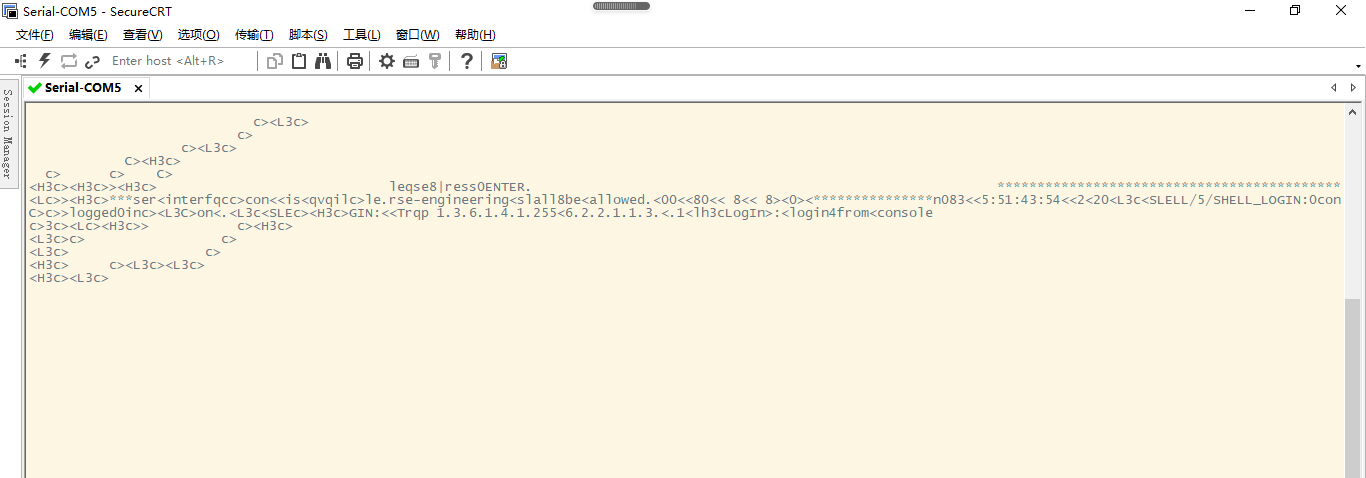 (机器型号:H3C MSR 20-20)采用console线把路由器与电脑连接后,采用CRT连接登录,点击连接终端,然后按回车健,出现如下界面,是怎么回事?这貌似不是正常的命令行界面吧?谁能告诉我?谢谢,我是新手