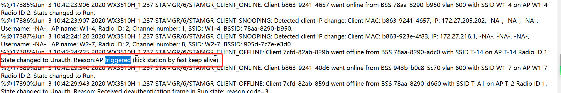 日志手册找不到这条,现在的情况是很多终端因为这个原因莫名掉线,字面上看是AP引起的下线,但是是配置原因还是终端原因暂时还定位不到