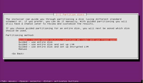步骤1 从安装盘启动,到进行分区的步骤,按alt+F2进入命令行界面。