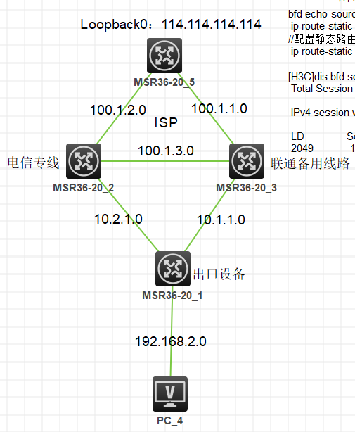 出口设备上联2条线路,一条联通,一条电信,现在想用静态+bfd(想用bfd去探测某个公网dns地址)来检测上行链路是否有问题