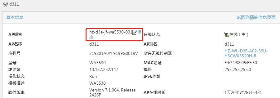 AP名称从hz修改为d311之后,WSM的AP标签没有自动修改过来,如下图,是否需要重新同步来触自动更新标签,还是只能手动修改?