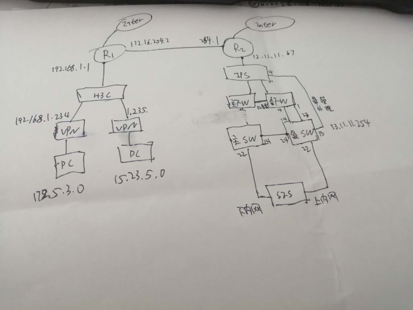问题是。目前R1路由器下面的子网用户可以访问到R2路由器的服务器地址。R2路由器由于路由指向的缘故只能访问的路由器接口的地址无法访问到下面的用户。想请教一下实现R2路由器下面的用户可以访问到VPN下面的用户或者接口为192.168.1.0 网段地址的 需求路由 改如何写?
