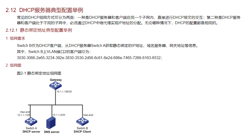 · 设备作为DHCP客户端时,需要在DHCP服务器上配置IP地址与客户端ID静态绑定,否则设备无法申请到静态绑定的IP地址。