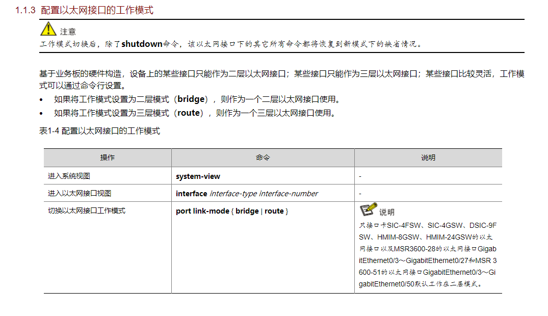 GE1和GE2口想设置不同的网段,GE1成功GE2报错,查看配置GE2的工作模式是bridge,是这个原因报错吧?能否改为route模式,怎么修改?