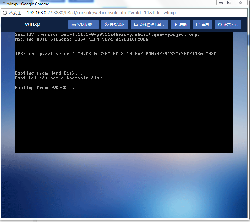 H3C Cloud 云桌面新增虚拟机之后,虚拟机开机后无法从光驱启动,ISO镜像文件己更换了多个,一直卡在Booting from DVD/CD界面,无法给新建的虚拟机安装操作系统。