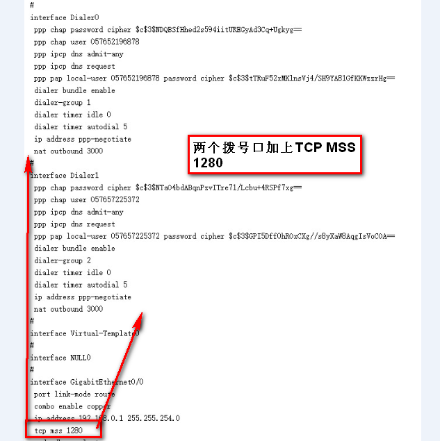 1、将外网拨号口的的tcp mss值统一设置为1280