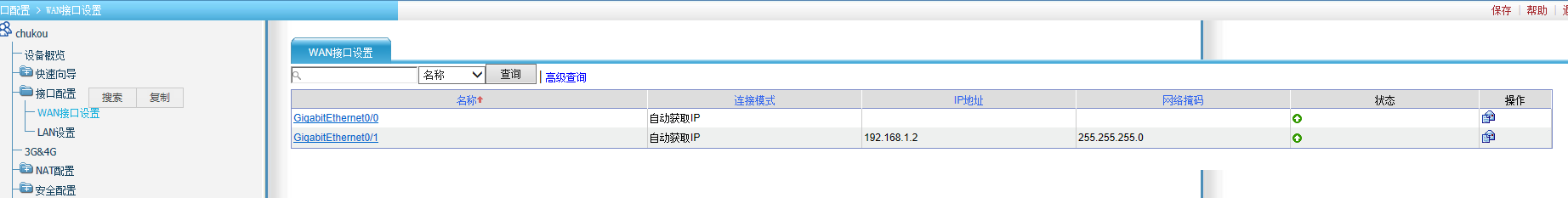 2、请确认另外一个WAN口也配置了地址转换。