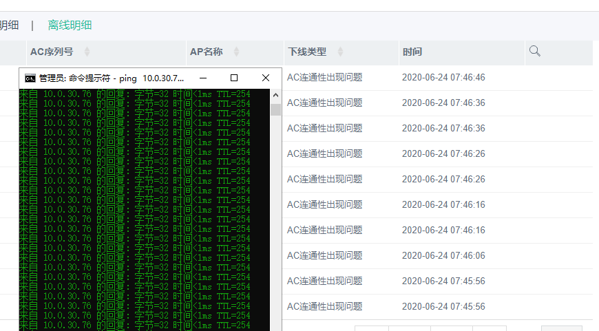 ping ap 地址无掉包,后台离线日志全是这台AP的离线上线记录,好像有规律。