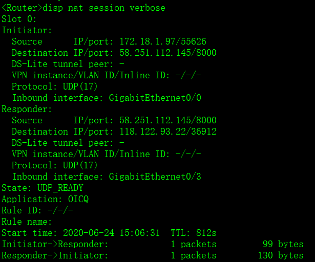 支持NAT的设备上面disp nat session verbose