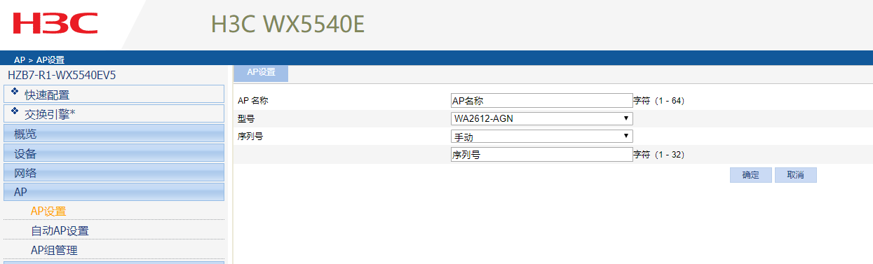 AC上新增AP模板,