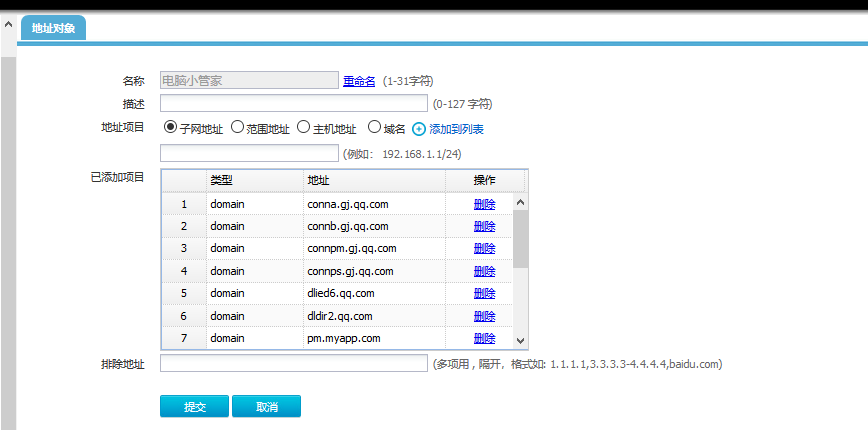 ACG 1000本地认证可以针对域名进行地址放通吗配置截图如下1.2.