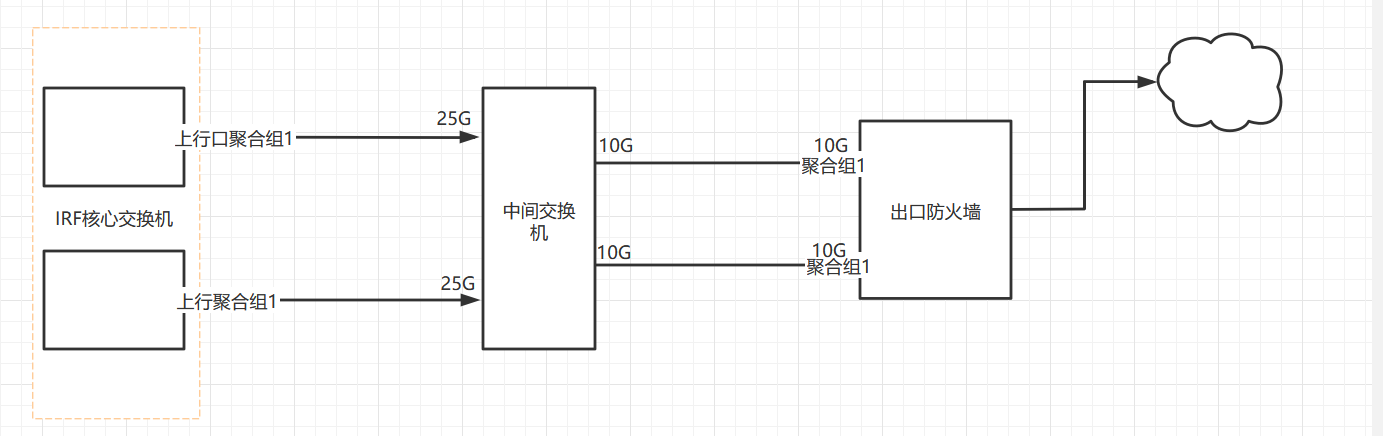 核心交换机端口为25G。防火墙只有10GE端口,目前想在中间加一台交换机(同时具有25G和10G端口做转换),这样做的话,中间交换机还需要做聚合嘛,还是只做个access把两端的每两个口加个vlan,这样的话网络流量会不会有问题?