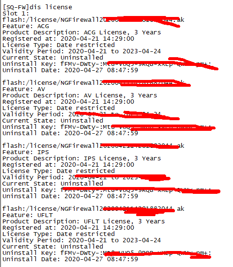 License的当前状态: · Formal表示当前已经为该特性安装了正式License,License处于有效状态 · Trial表示当前已经为该特性安装了临时License,License处于有效状态 · -表示当前无有效License,用户如需使用该特性,请安装对应的License |