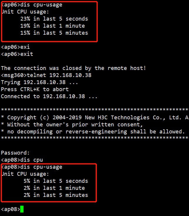msg360小贝无线,wap722e。有部分AP终端连不上,AP的cpu比有连接的终端的CPU还要高。 如下,AP08有终端连接,AP06没有终端连接。请问什么原因?