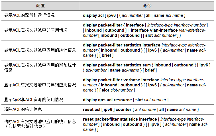 1、可以使用如下命令查看全部ACL的匹配情况: