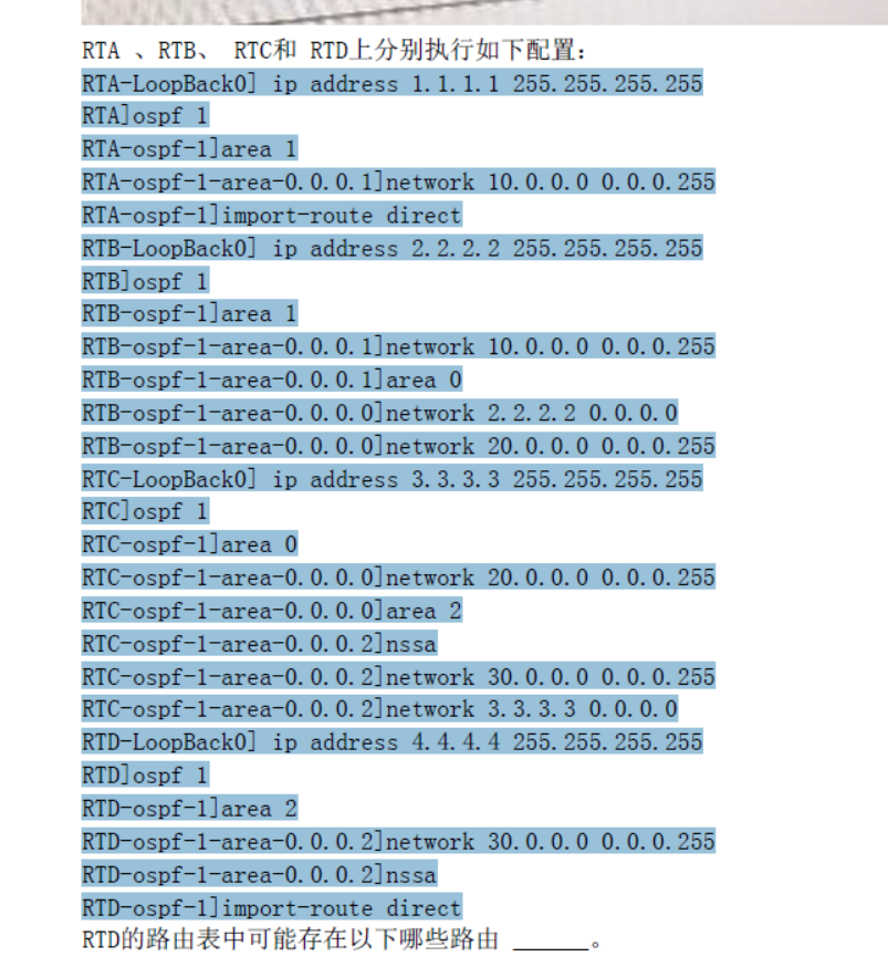 RTA-RTB-RTC-RTD,则RTD的可能拥有的路由如下: