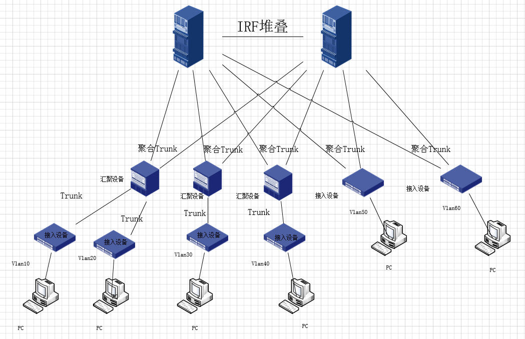 4、根据网络拓扑图中的核心设备由于做了IRF,与下联交换机的互联,建议配置链路聚合,减少更多的物理环路。