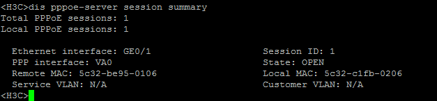 在PPPOE-SERVER/MSR36-20_2 的G0/1口