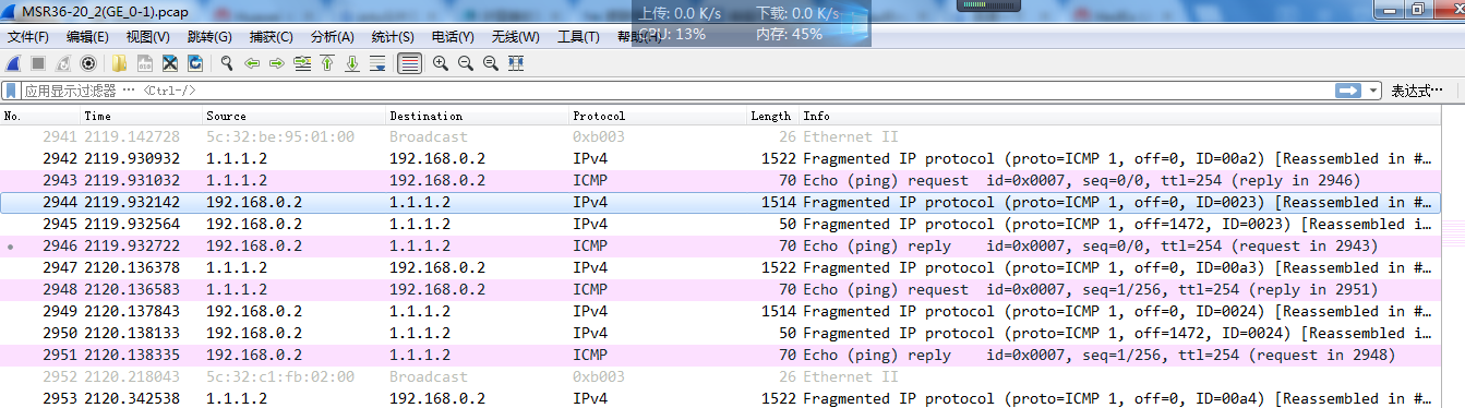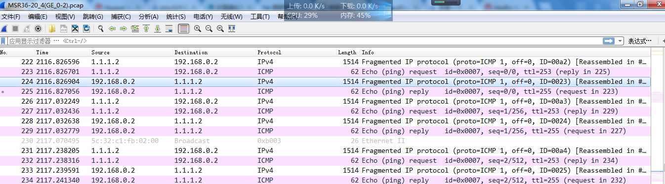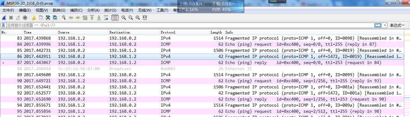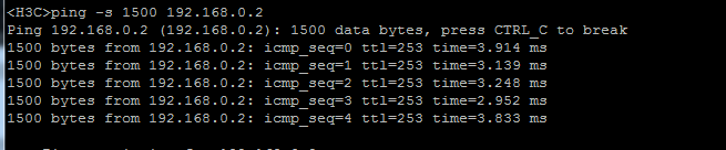 在客户端/MSR36-20_3 上 ping -s 1500 192.168.0.2