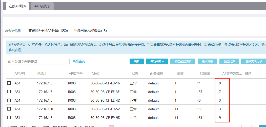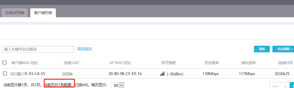MER5200 管理无线AP,客户端数有二三十个,但是为什么终端菜单栏只有一个,这是什么缘故,如何把连接的二三十个终端可以展示出来1AP2终端展示只有一个。。。