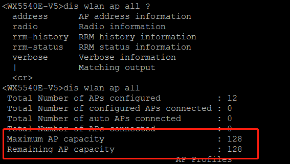 这个是V5 AC的3024E有交换模块和AC模块 操作的时候要看清楚是在AC模块操作的。dis wlan ap all 有AC的最大AP能力和剩余的AP能力 就是目前具备的license状态。