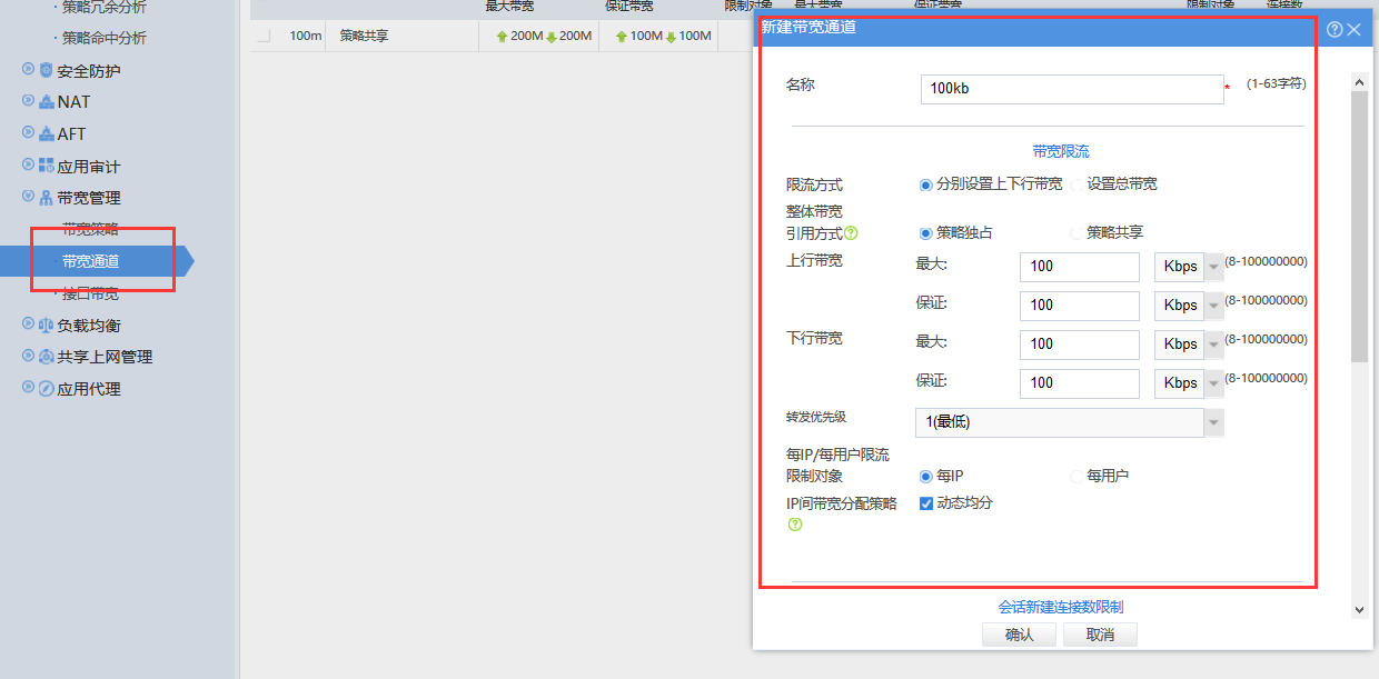 2.配置带宽通道,即比如你要限制的上下行100KB