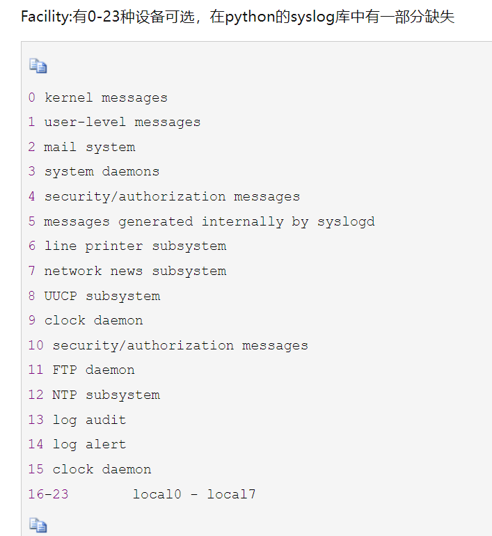 "facility local-number:设置日志主机的记录工具。缺省记录工具为local7,取值可以为local0~local7。主要用于在日志主机端标志不同的日志来源,查找、过滤对应日志源的日志。"