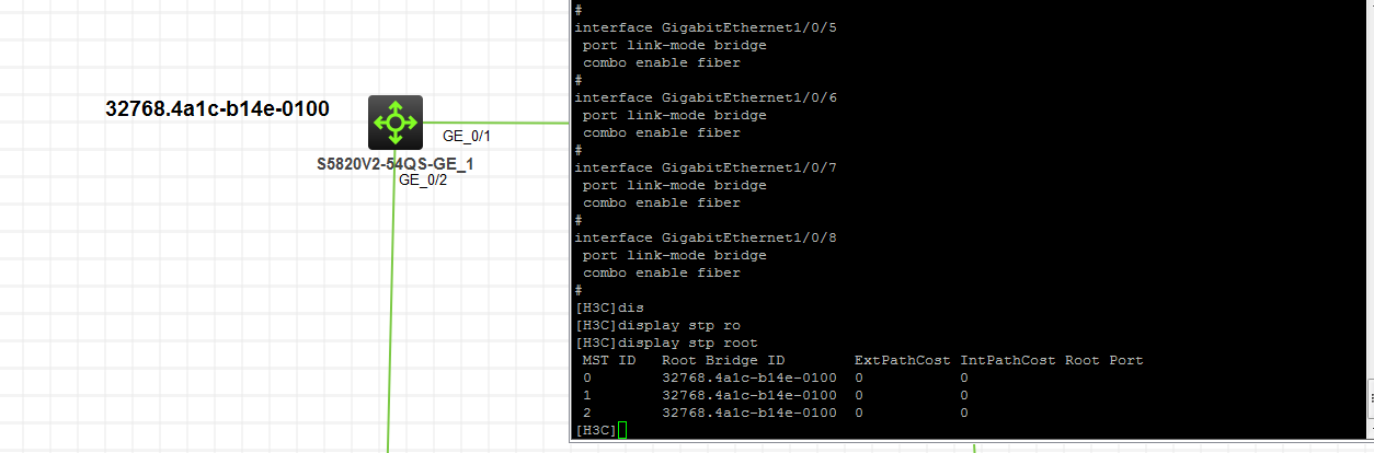 我在做MSTP实验,端口已经允许所有vlan通过,vlan5映射在事例1,vlan10映射在事例2,我指定第四台交换机为事例1,2的根,但是我在其他交换机观察发现都认为事例1,2的根为自己,这是为什么????