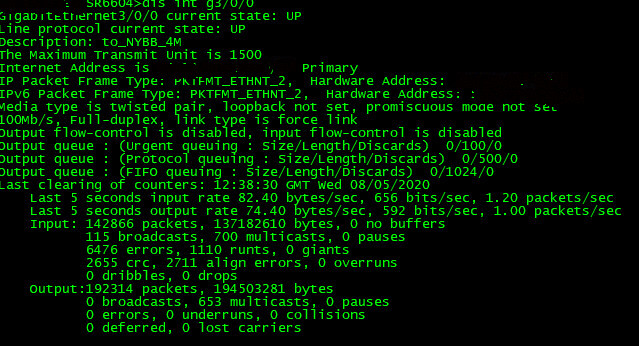 SR6604路由器视频会议卡顿,视频监控看丢包严重,查看端口有输入错误包,而且错误包一直在增长 ,应该怎么排查解决