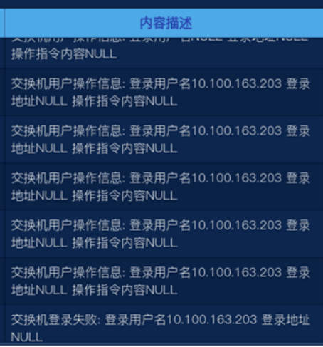 通过科东的网安检测装置使用SNMP采集我们s5130交换机的登入登出等操作数据时会出现部分参数无法有效解析,监测装置上显示部分数值为NULL,这是什么原因导致,如何解决?