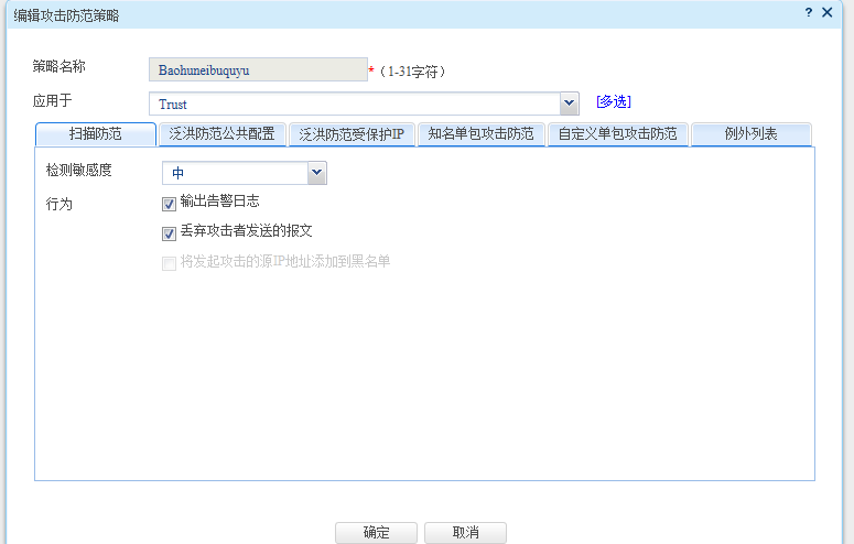 我想加一个策略,保证trust区域的终端不受tcp syn\ack这种攻击,那请问上图中的这个“应用于”应该选哪个区域,是trust还是untrust呢