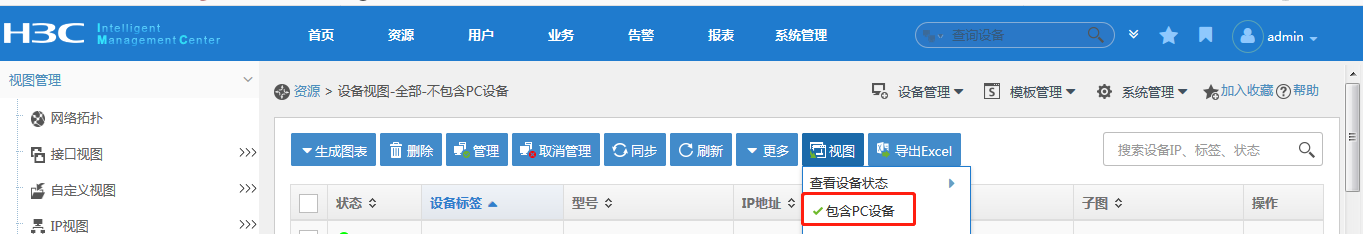 在“资源”-“设备视图”中点击“视图”将包含PC设备给勾选上。