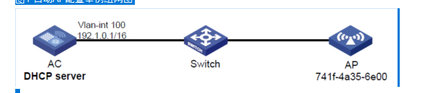 如图1所示,AC作为DHCP服务器为AP分配IP地址,现要求使用自动AP功能,实现AP与AC自动关联,并且在关联后将AP转化为固化AP。