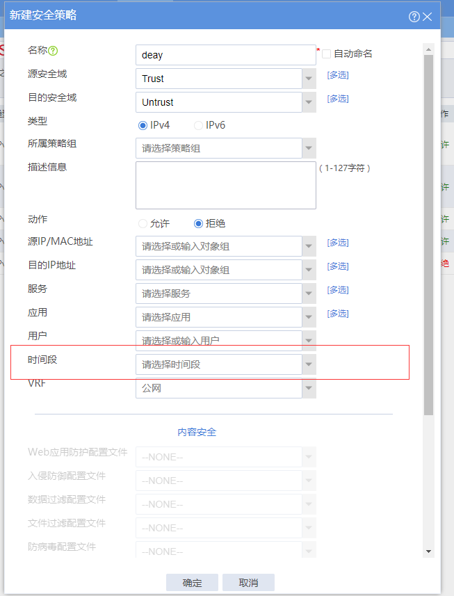 web 安全策略 新建一个这样的策略 时间段选择下班时间开始 第二天上班时间结束 移动到第一位即可 首先保证系统时间正确
