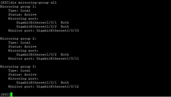 [DeviceA] mirroring-group 1 mirroring-port gigabitethernet 1/0/1 to gigabitethernet 1/0/3 both