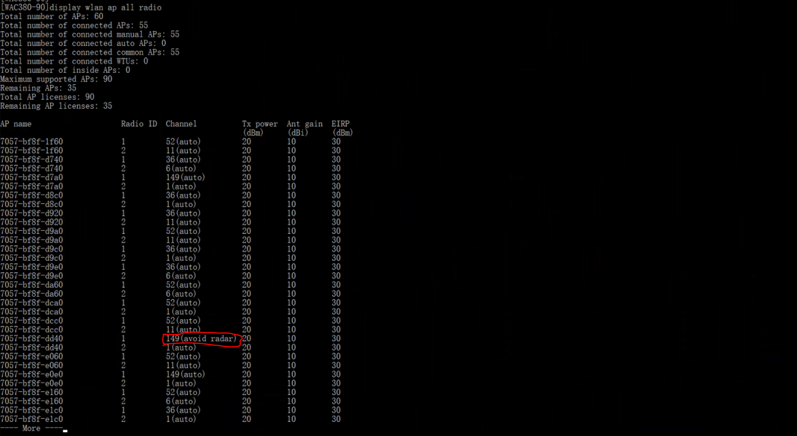 dis wlan ap all radio ;可以看所有ap射频口的信道利用率,看看卡的那层楼的几个ap的射频口情况如何,可能是信道这块的问题。