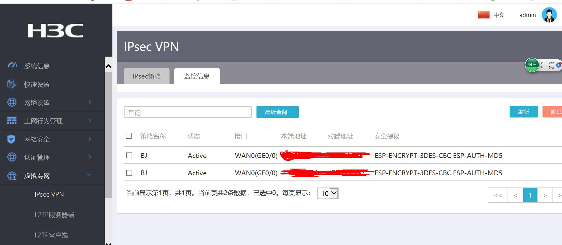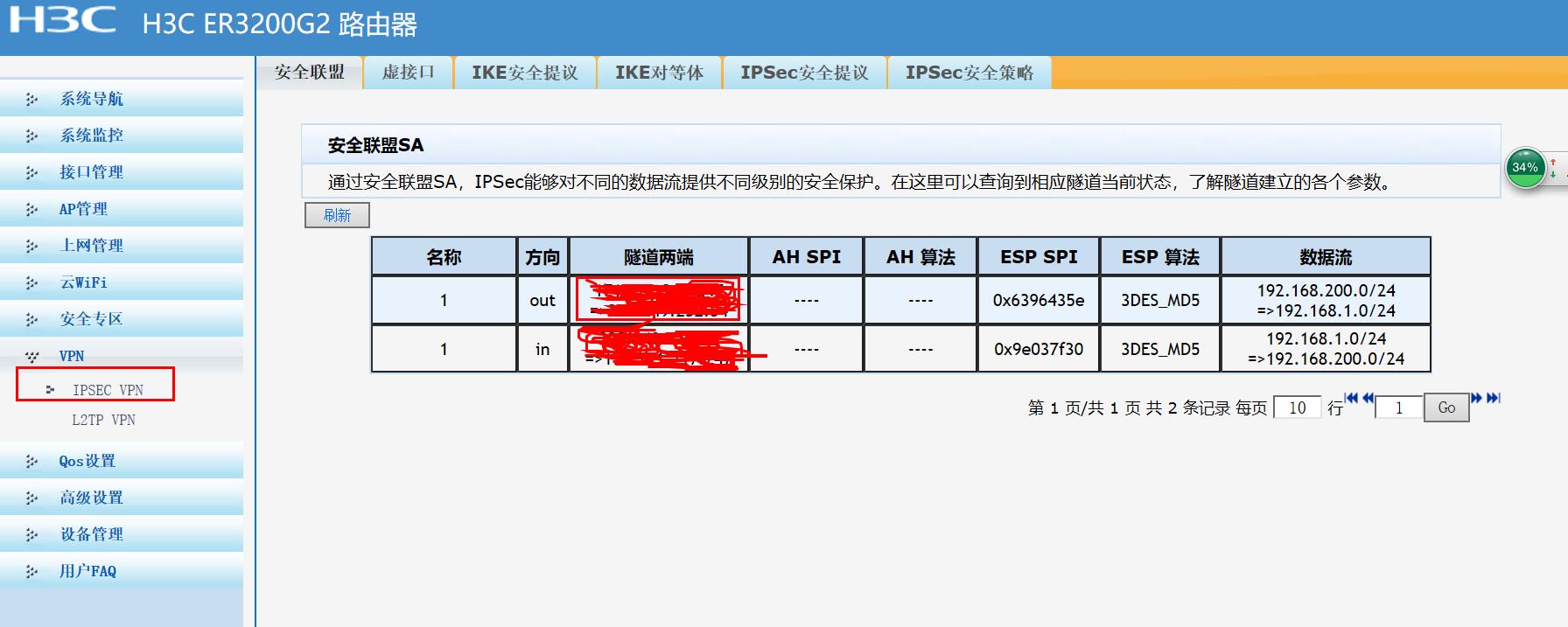 H3C ER3200G2 路由器 IPSEC不能PING同
