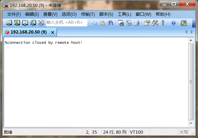 以前一直可以连接的,昨天通过telnet连接上以后,突然掉线,然后就显示以下画面