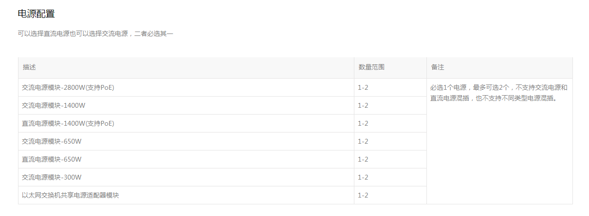 以下是S7500E的电源模块选配信息: