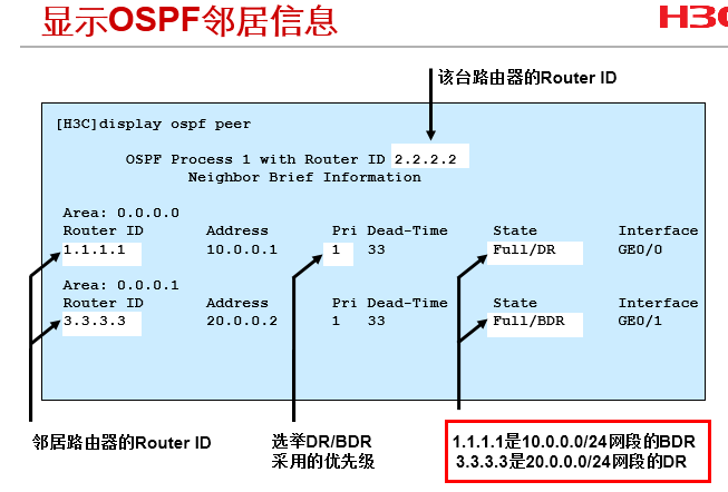 可以使用dis ospf peer verbose进一步确认。会有mode is dr或bdr的显示。