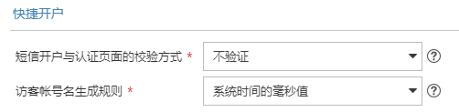 在 用户>访客策略>修改访客策略>快捷开户>短信开户与认证页面的校验方式 选择不验证