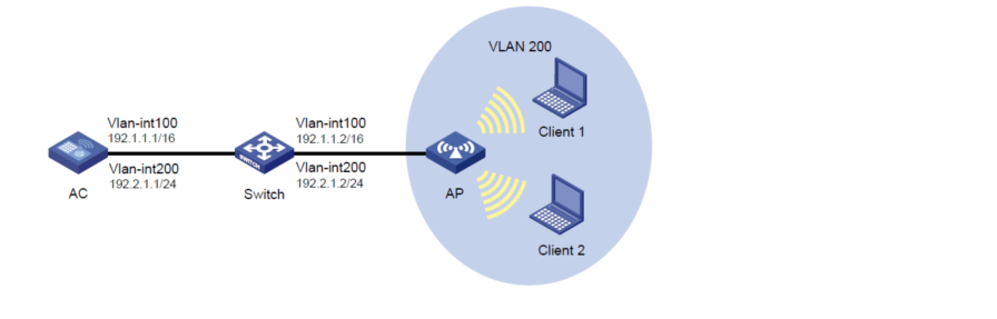 [AC-wlan-st-1] client forwarding-location ap vlan 200 业务vlan
