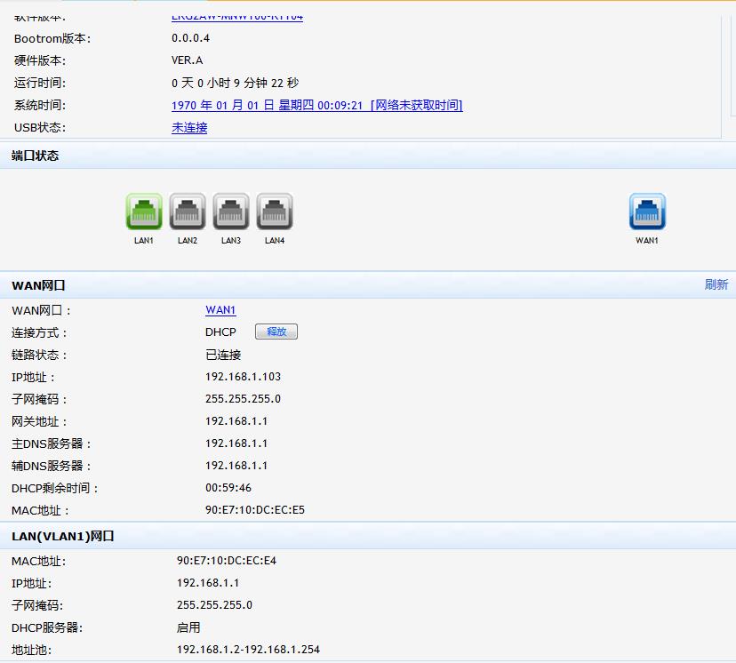 LAN地址改另一个网段试试看,我看LAN和WAN都是192.168.1.1 的地址。这样是有问题的